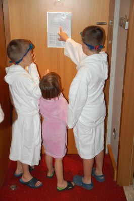 Első dolgunk tehát az volt, hogy megkóstoljuk a süteményeket és pogácsát, ezzel is erőt gyűjtve a wellnesshez, amit még vacsorázás előtt terveztünk. A gyerekeket nem kellett különösebben nógatni, hogy öltözzenek át fürdőruhába! A szálloda gondoskodott gyerekméretű köntösökről, kislányom azonban még olyan apró, hogy neki nagynak bizonyult a kapott köntös, szerencsére hoztunk sajátot.