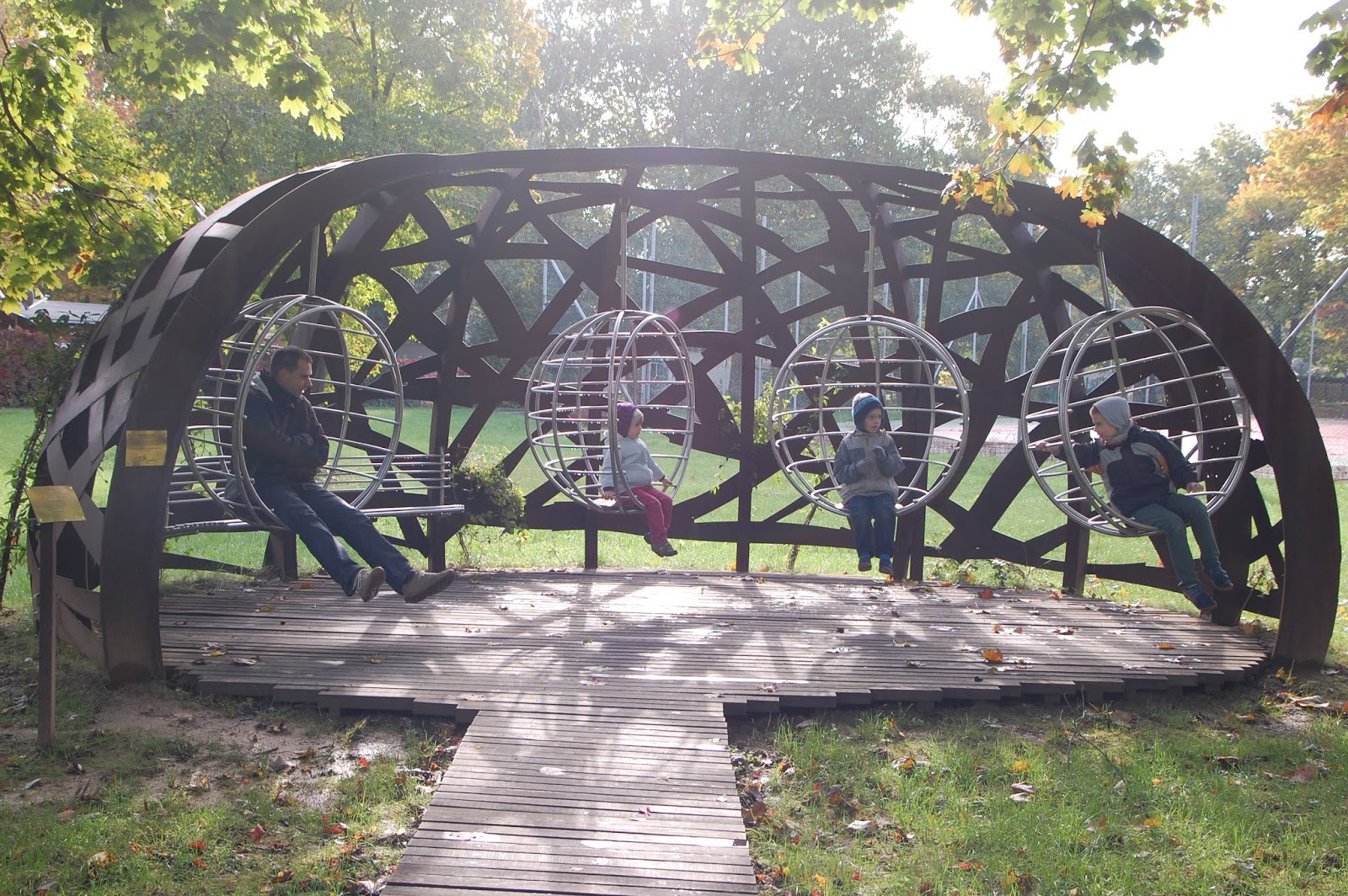 Ezután a Kneipp mezítlábas ösvényt és Toboz Ottót kerestük fel Bükfürdő egy nem túl messze található másik pontján. Az októberi hűvösben természetesen már cipőben lépkedtünk a különböző felületeken, de azt kell mondjam, hogy még így is izgalmas és élvezetes volt. A pihenőpark része egy különleges hintaállvány, ahol “meditálni” is lehet.