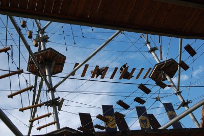 A Kristálytorony már messziről látható, a Hotel Caramell nevű épületegyüttes mögött magasodva. Állványzata kissé becsapós látvány messziről, közelebbről látszik csak, micsoda komoly kalandparkot építettek ide. A kristályszerkezetű felépítmény különböző nehézségű kalandpályákat foglal magába, az egészen kicsiknek kitalált apró feladatoktól kezdve a profiknak szánt komoly rendszerekig. A tetejébe fellépcsőzve gyönyörű kilátásban volt részünk. Lépcsőmászás közben nem győztünk csodálkozni a kalandpark leleményes megoldásain, humoros ötletein. A Kristálytorony nagyon időjárás-függő intézmény, érkezés előtt mindig fontos előre érdeklődni a nyitvatartásról!