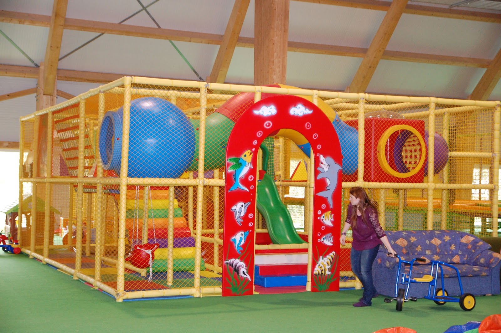| Kicsik játszója (szülőknek mindenhol kihelyezett kényelmes kanapék) |