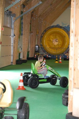 Mondhatom, a legjobbkor érkeztünk. Mivel tudtuk, hogy egy közel 3,5 órás út vár ránk e program után hazafelé, amit úgyis végigalszanak, könnyedén mondtunk le a gyerekek alvásidejéről. A Greenfield-es ebéd után tehát rögtön erre kanyarodtunk (ki van táblázva a játszópark mind Bük, mind Bükfürdő felől), és egy csaknem teljesen üres játszóházat kezdtünk el felfedezni fél kettő magasságában.