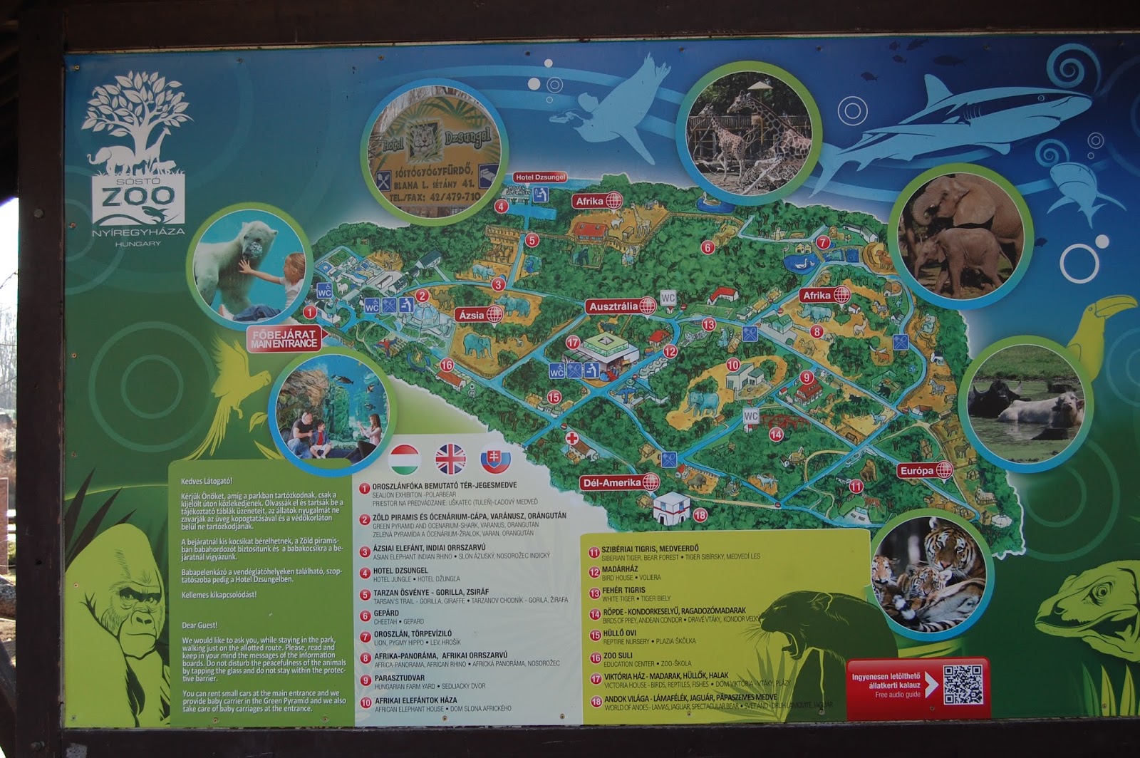 Az állatkert különlegességei még a fehér tigrisek, róluk sem készült fotó, nagyon hideg volt, igencsak fáztunk. Viszont fotóztam egy nagy térképet még el elején, íme:
