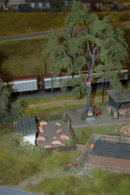A téli szünetben nagypocakosan elhoztam a családomat. (Az ekkor készült képek sajnos megmagyarázhatatlan módon eltűntek.) Négyéves kislányomat bizony még emelgetnünk kellett, bár néhány részletet látott úgy is, ha felállt a direkt erre a célra épített lépcsőfokra, ami végigkíséri az egész terepasztalt. A mélyebben, bent fekvő látnivalókhoz, apró részletekhez fel kellett őt emelni, hat és nyolcéves fiaink azonban teljesen önállóan nézték végig, és nagyon tetszett nekik, legszívesebb maradtak volna (nap végén mentünk, utolsóként hagytuk el a terepet). Leülni csak a büfében tudtam – erre nagy szükségem volt, mert a várandósság végén nehezemre esett hosszabban állni.