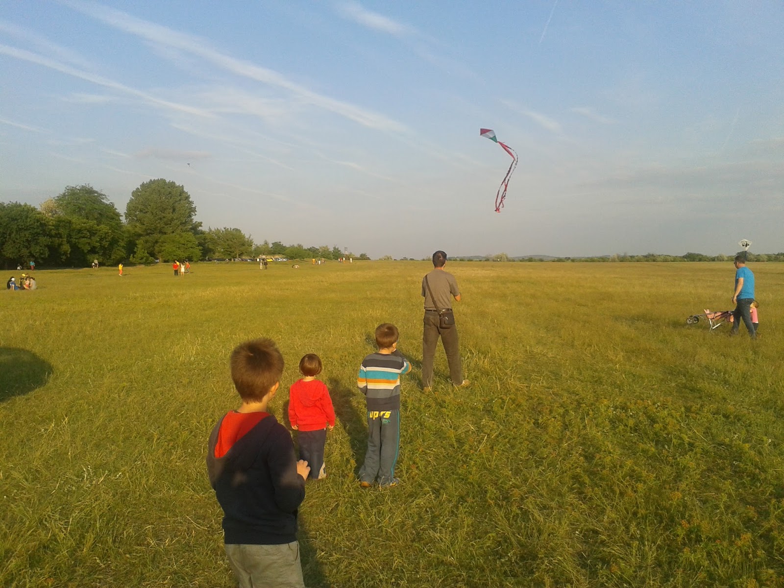 Az a tavalyi érzés, ahogy a kellemes és éppen alkalmas szélben egymás mellett repteti a sárkányát sok-sok család, miközben megy le a nap, még most is megmelengeti a szívemet. Sajnos a mobillal készült fotók nem adják át, mennyire szép pillanatok voltak ezek.