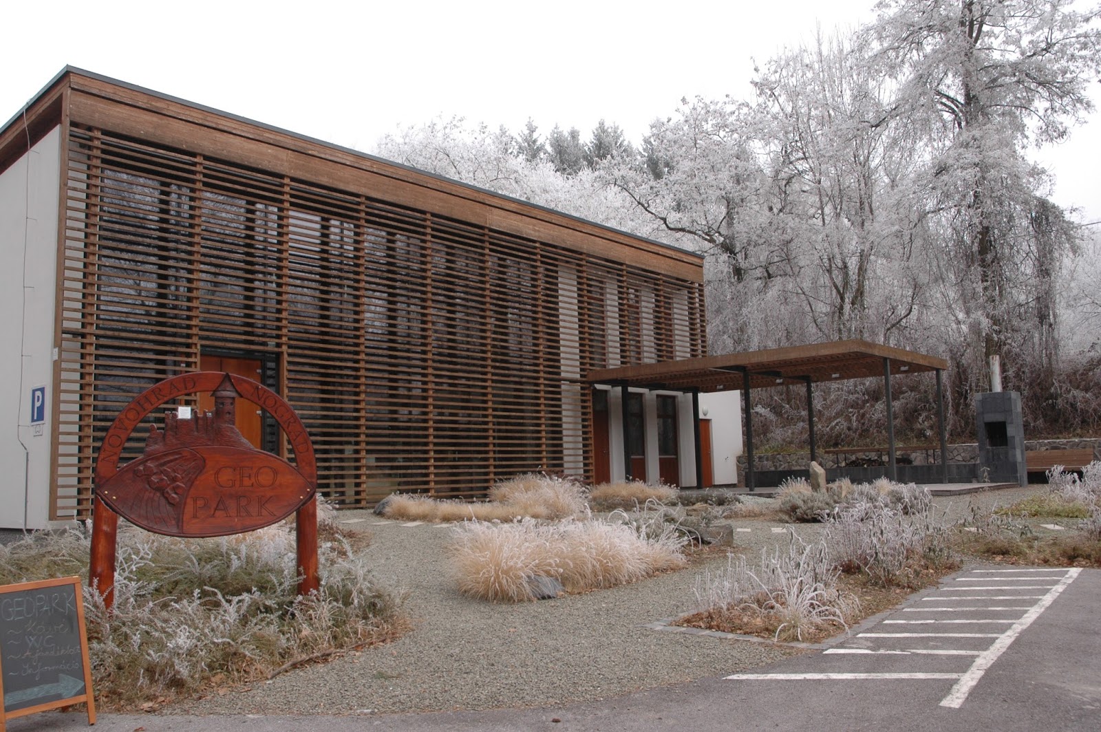 A játszótér mögött pedig egy ilyen gyönyörű Geopark központot találtok: