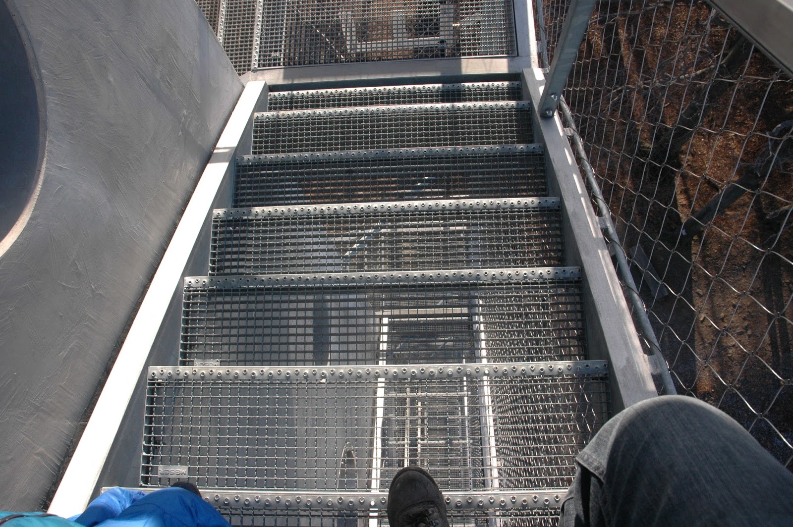 A turistaszálló és étterem épülete mindössze “néhány lépésre” található a kilátótól. Kialakítottak egy mosdóegységet azoknak, akik a bivakban éjszakáznak, tehát ha éjjel fent alszol a kilátóban, és mosdó ügyeid támadnak, bizony le kell kutyagolni a sok-sok lépcsőn egészen eddig a jelig. És ekkor valószínűleg elgondolkozol ezen a “néhány lépés” kifejezésen. 🙂