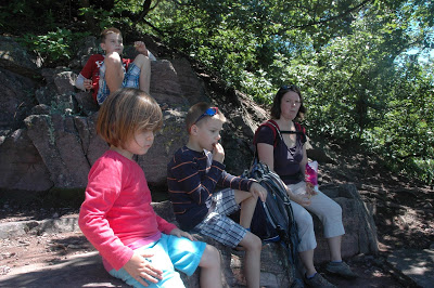 Az, hogy a képen a férjem áll egyedül, nem véletlen. Az árnyékos pihenőben leültettük a gyerekeket, és nem engedtük le őket a kilátópontba, mert annyira meredek az oda vezető lépcső. Fotózni azért innen is lehet.