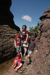 És akkor eddig tart az a rész, ameddig mondjuk ovis korú gyerekekkel ajánlom ezt a túrát. Mert a Zsongor-kő felé olyan erős szintemelkedés következik (jelzés: kék kereszt, majd kék háromszög), olyan nehéz terepen, ami nem ajánlott kicsikkel. Néhányszor kihagyott ennél a résznél a szívverésem….