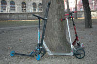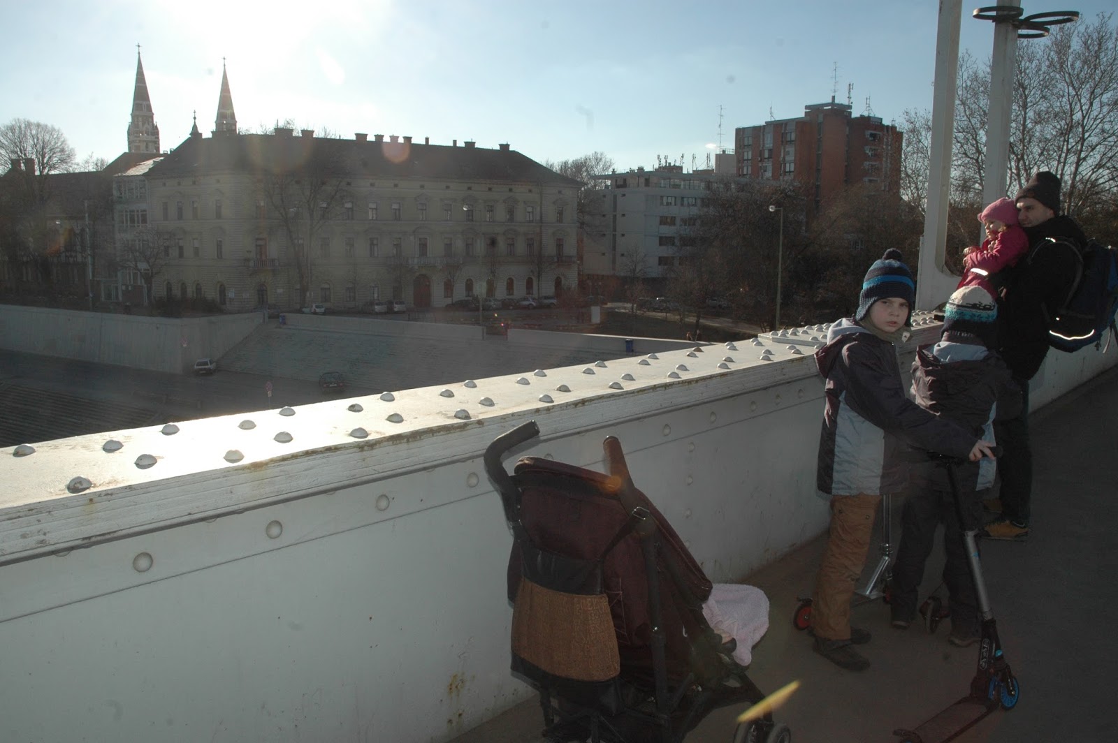 Beszélgetésünk során jött a gondolat: vigyük a rollereket. A szeged-belvárosi távolságok nem elég nagyok az autós mozdulásokhoz, de túl hosszúak ahhoz, hogy a gyerekekkel mindenhová gyalog menjünk. A rollerek kicsire összecsukhatóak, simán befértek a kocsiba. Mivel Legkisebb Barangoló még babakocsis, egyikünk mindig sétált, a többiek meg előregurultak, és megvárták a négykerekű lemaradót.