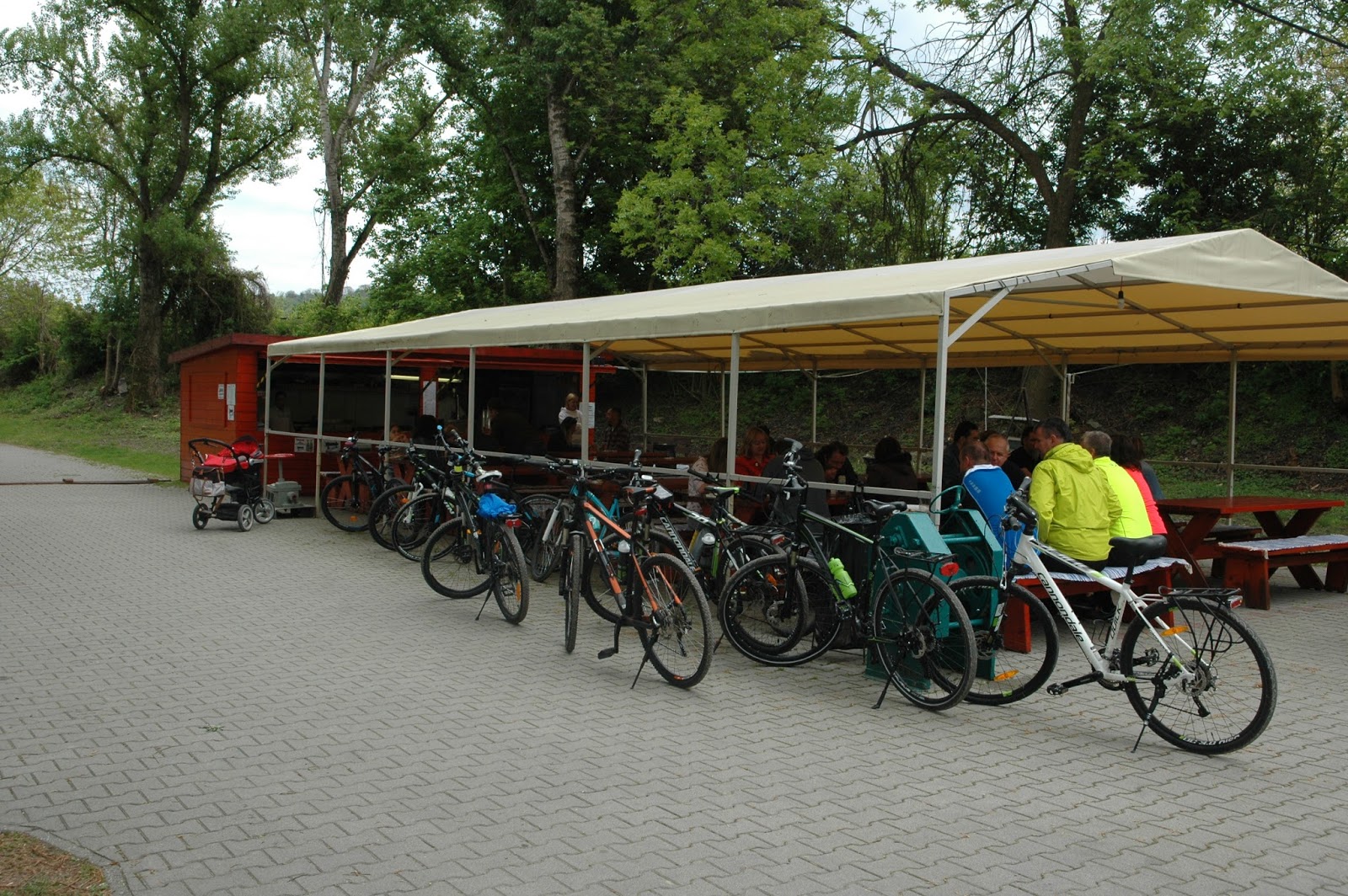 Itt gyönyörű környezetben hagyhatjátok a kocsit, illetve aki bringával érkezik, a biciklit. Mert bizony ott jártunkkor is egy nagyobb biciklis csapat tartotta épp pihenőjét. Ideális hely erre! Az ápolt fűben akár még elheveredni sem rossz ötlet, a gyerekek pedig természetesen egyből megrohamozzák a játszóteret.