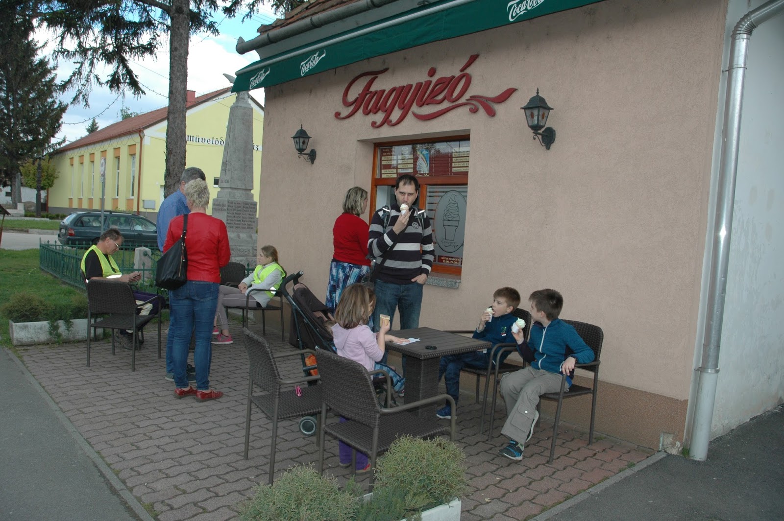 A Hajóskanzen élményei után úgy gondoltuk, hogy ideje egyet fagyizni! Mivel fagyizó embereket láttunk visszatérni a skanzen területére a másik, büfé mögötti vonatátjáró felől, elindultunk mi is ebbe az irányba.