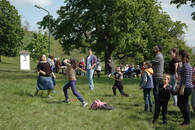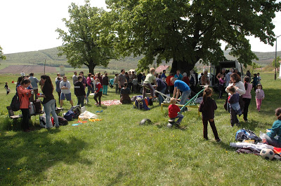 A délután hátralévő része játékokkal, beszélgetéssel telt. A Kálvária alatti zöld terület éppen megfelelő arra, hogy piknikezzen, métázzon, focizzon egy nagyobb csoport, a nyári melegben még a nagy lombos, árnyas fák is extra kényelmet biztosítanak. Mosdót is találtok, pottyantós, de van! Kocsival fel lehet jönni végig, ha autóval hoznátok fel a nagy bográcsot. Míg ott játszottunk, sok túrázó, zarándok ment el mellettünk, a Kálváriadomb a környék népszerű látnivalója, és a kilátás sem csúnya innen.