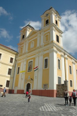 Aztán felsétáltunk a Kegytemplomig, ahol megpihent a csapat a kellemes, nyitott előtérben – itt lehet mosdózni is.