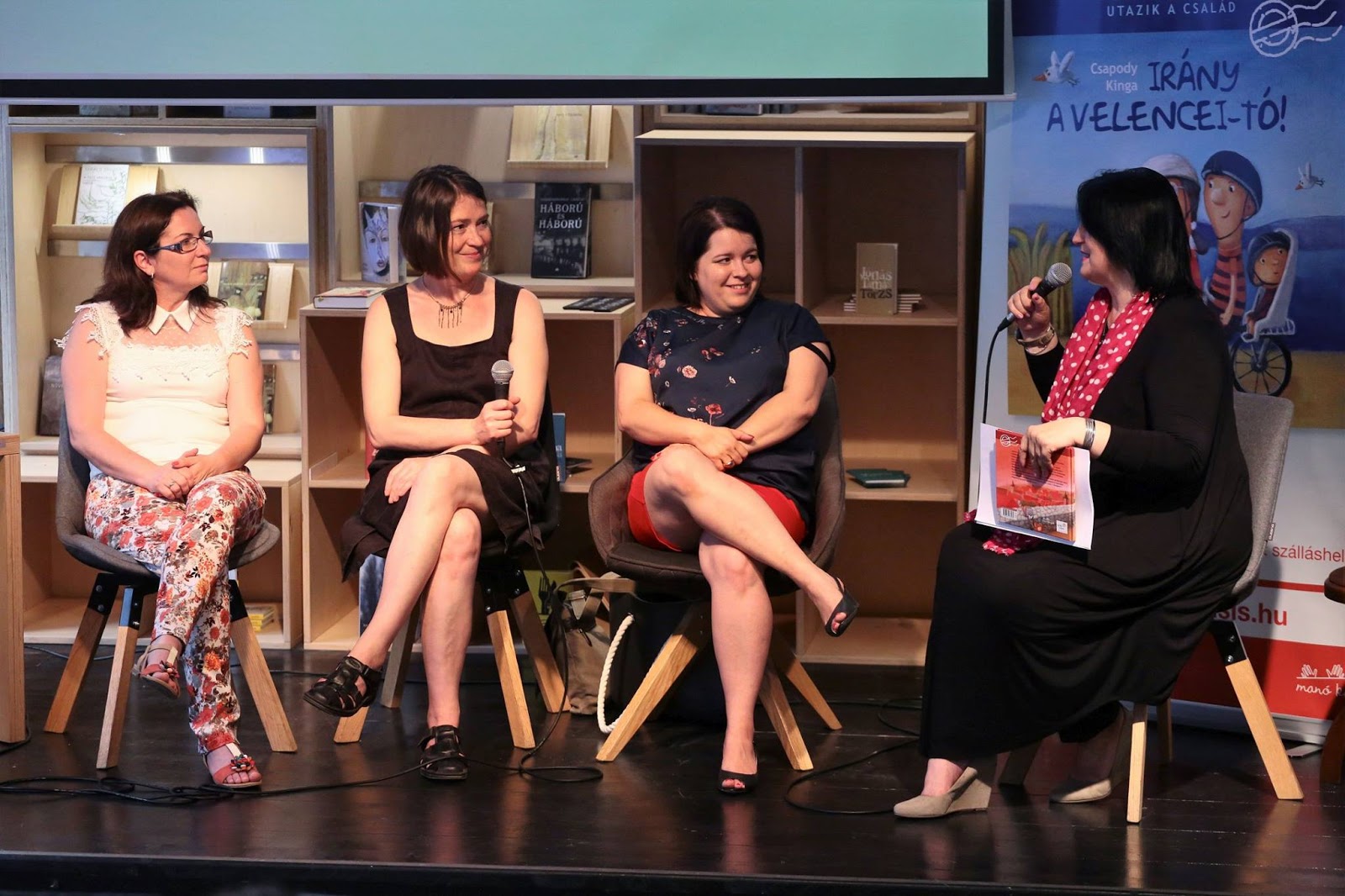 Gyetvainé Zováth Anikó, Szalma Edit, Csapody Kinga és a beszélgetést rendkívül felkészülten vezető Oláh Andrea |