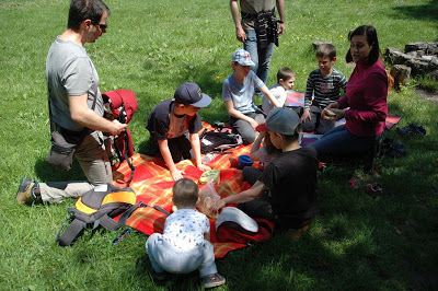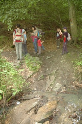 A találkozót a Lajos-forrás mellett található parkolóba beszéltük meg unokatesóékkal. Kb. egyszerre érkeztünk, gyorsan mindenki megkóstolta a friss forrásvizet, majd jó éhesen lesétáltunk a rétre, hogy elfogyasszuk szerény ebédünket: a fasírtot, a kenyeret és a zöldségeket.