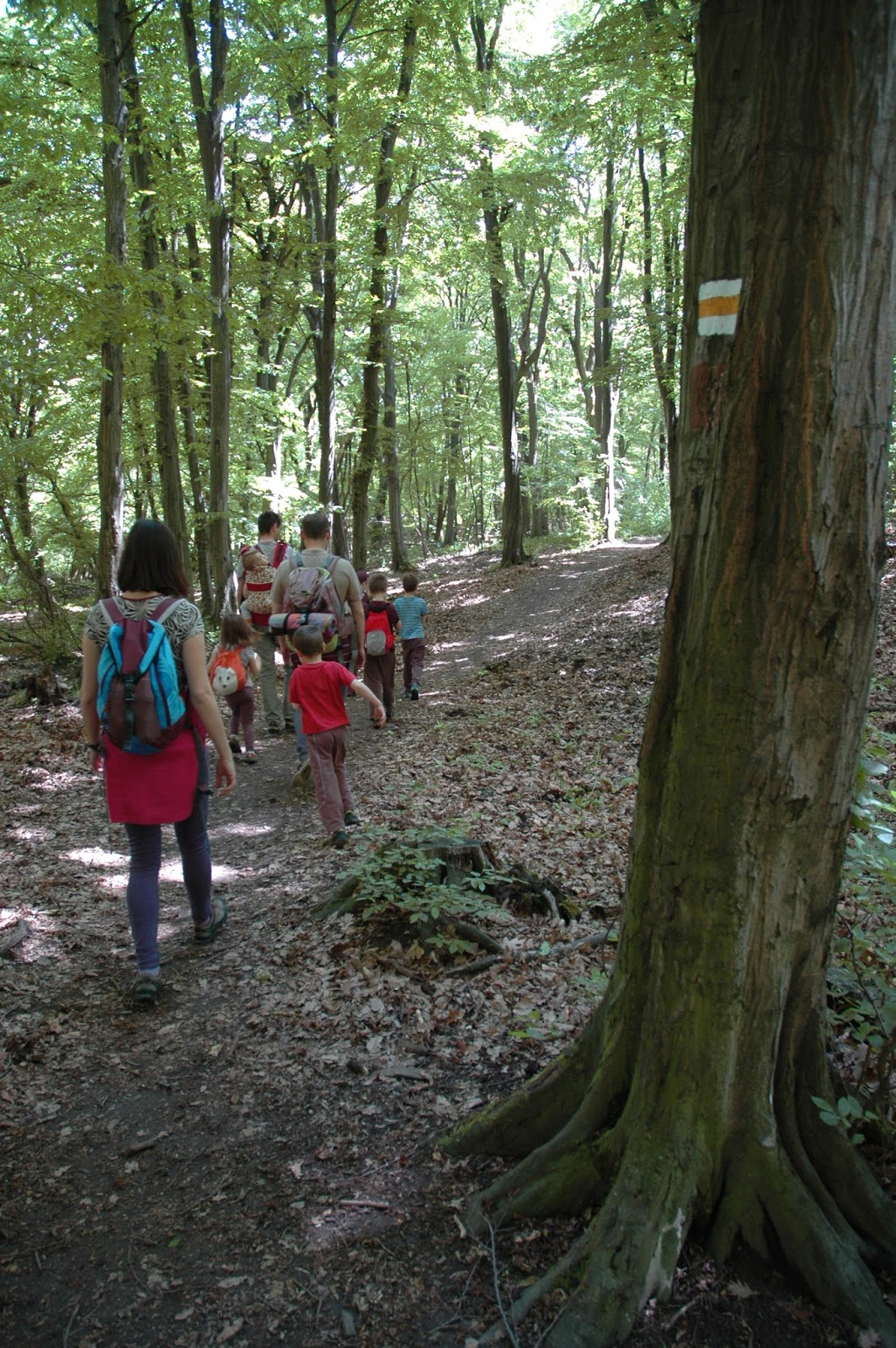 Ezt a kb. 9 km-es túrát már kora várandósan tettem meg, két rosszullét között illetve közben. Nagyon elfáradtam – jobban, mint a gyerekek – de megérte nekivágni, ugyanis az erdei friss levegő mégis segített a nehézségek elviselésében. Újra beigazolódott az örök érvényű igazság: a gyerekek társaságban igenis tudnak hosszabban gyalogolni. Sőt, mi több: ők vágtatnak elöl (azon vesztek össze, ki megy elöl, de aki a legelső, annak bizony nyomnia kell a tempót).