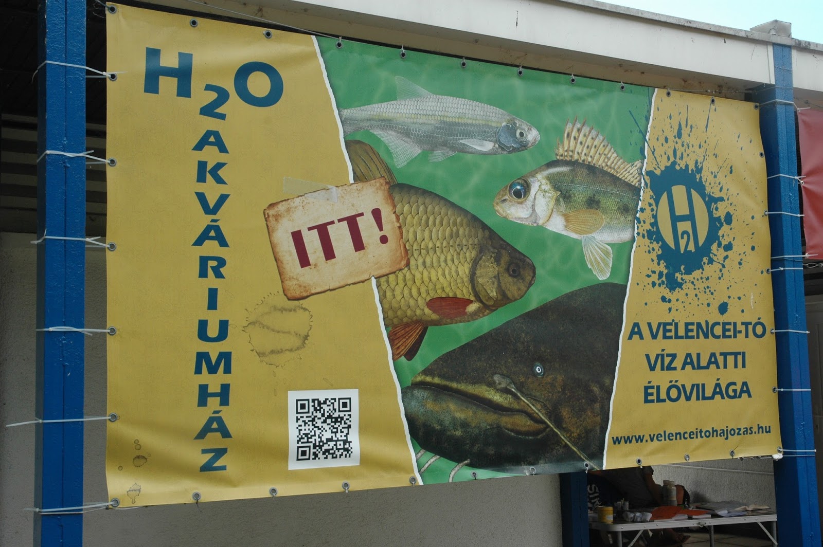 A nap első feléhez még szerettük volna az agárdi kikötőnél található H2O Akváriumházat is hozzácsapni. Ám ott a helyszínen derült ki, hogy elnéztem a nyitvatartást: idén szeptember 2-án (!!!??!!) ez az intézmény bezárt. Pedig szívesen megnéztük volna a Velencei-tó élőlényeit az akváriumokban…