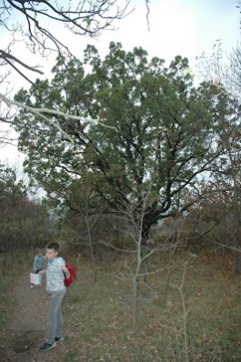 A séta vége felé egy gyönyörű molyhos tölgy példányt mászhatnak meg a gyerekek, majd egy hosszabb szakasz következik lefelé, vissza a “civilizált világba”: a Lepke sor – Fenyő sor sarkára lyukadt ki a tanösvény vége. Innen már tényleg csak néhány perc séta volt az autó.