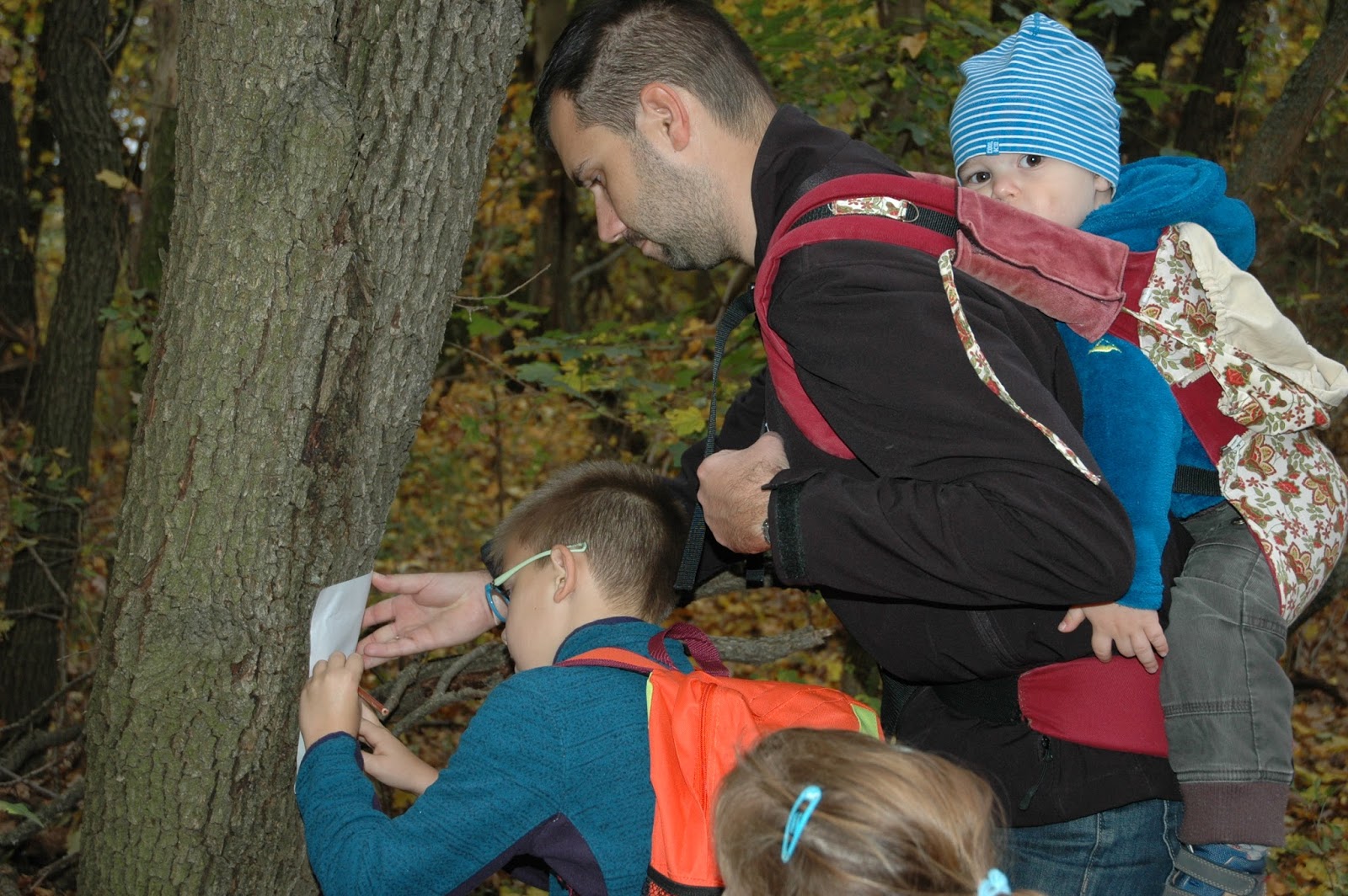 A változatos útvonal következő szakaszán akácos, majd tölgyerdő következett, ahol teljesíthettük a környezet szorgalmi feladatot, és kéregmintákat satíroztunk az erdő különböző fáiról.