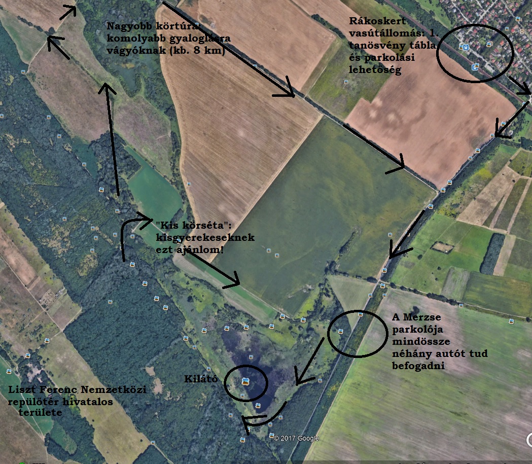 A Rákoskerti Vasútállomás mellől indul a hivatalos tanösvény túra, ám mi ezúttal is bemerészkedtünk a Merzse parkolójába. Bizony, néha azt gondoltuk, beleragadunk a földúton található egyik mély pocsolyába…, de hűséges Galaxynk állta a sarat – szó szerint! Kisebb autóval nagyobb esőzés után inkább hagyjátok a kocsit a vasúti parkolóban. Többet kell gyalogolni, kb. 20 perccel, de nem kockáztattok.