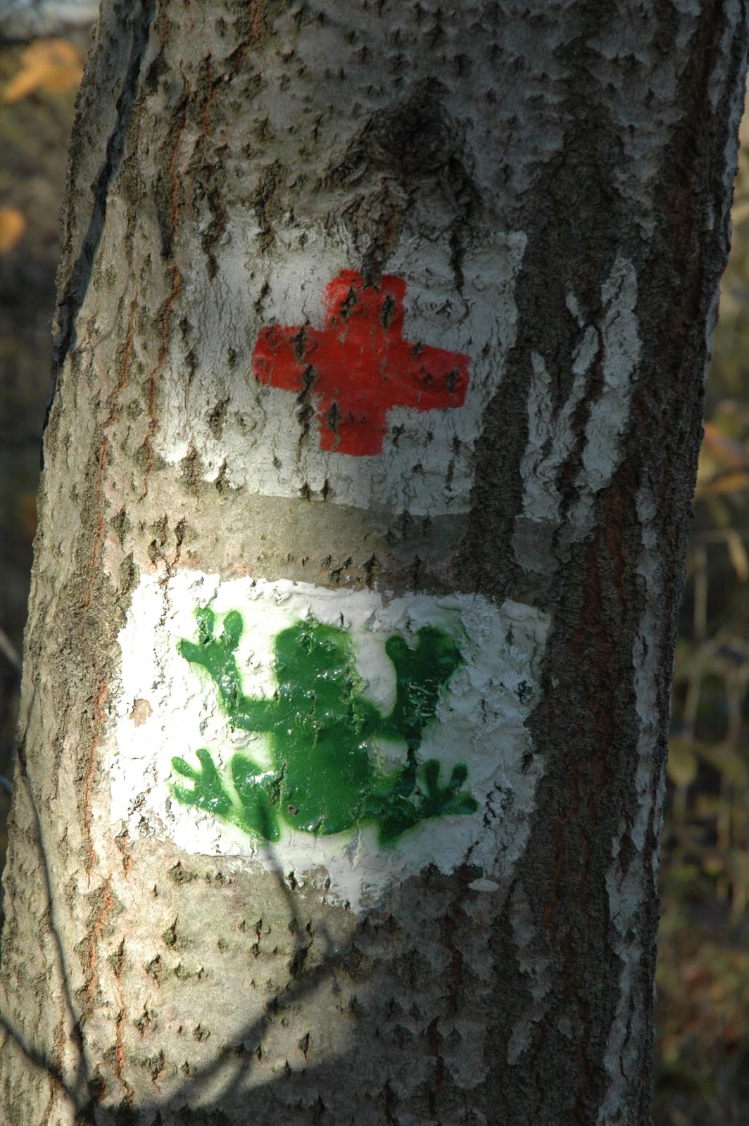 | Útbaigazító tábla a Rákoskerti Vasútállomásnál. Kövessétek a ZÖLD BÉKÁT! |