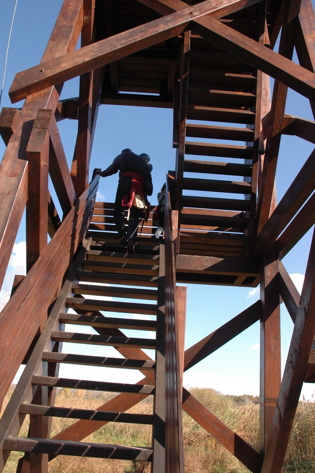 Az új kilátó a mocsár területének szélén helyezkedik el (a korábbi madárvártához pallósoron jutott be az ember a nádasba), lépcsője igen meredek, de nem olyan vészes, mint a dinnyési kilátó volt.