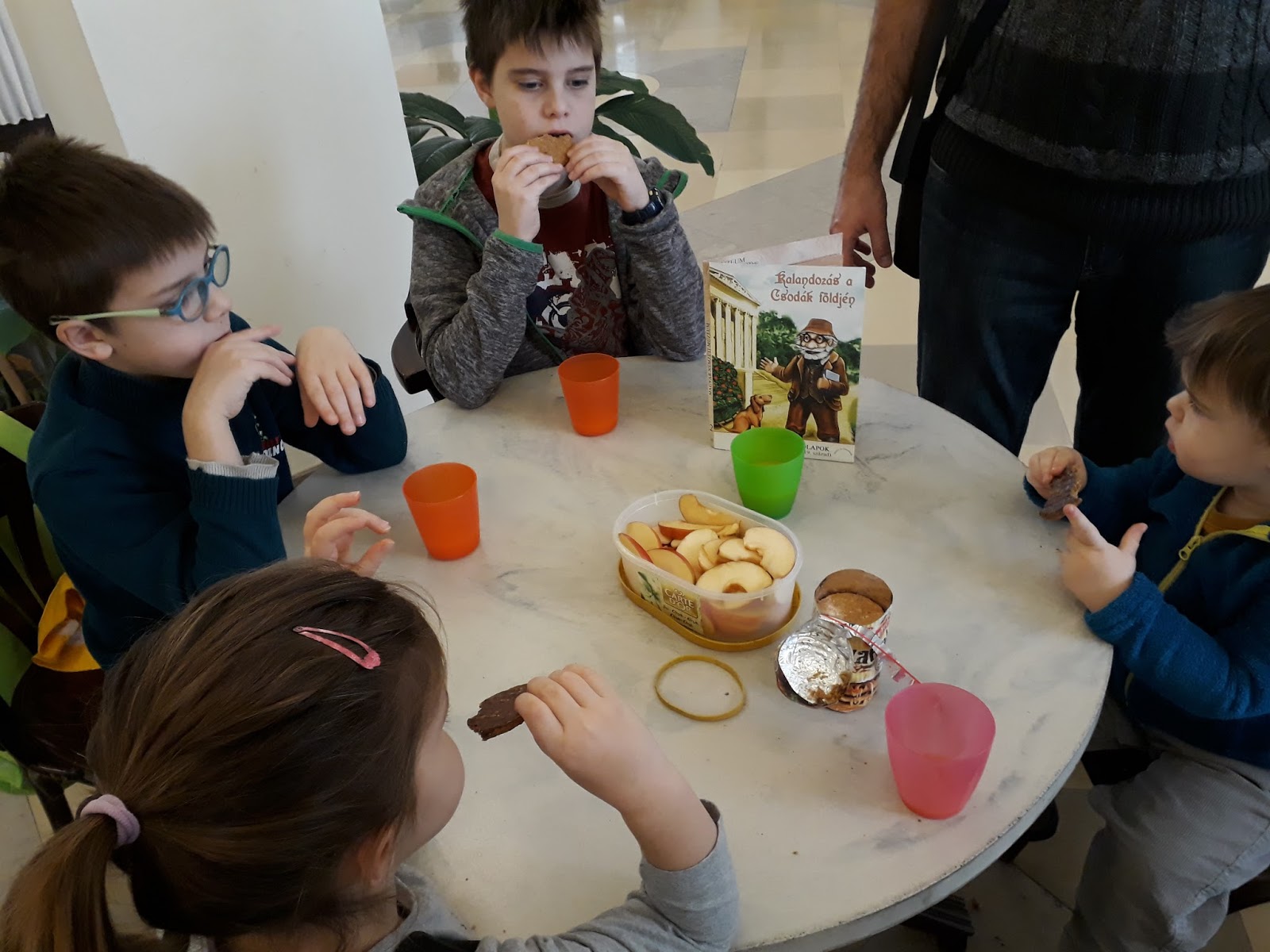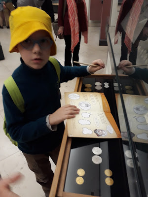 Egy büfében elfogyasztott tízórai után (nem szóltak ránk, hogy a sajátunkat esszük, sőt még szoptatni is tudtam), nekiveselkedtünk, először a Régészeti Kiállításnak. Az őskortól a rómaiakig vezetett minket ez a tárlat, nagyon sok érdekes és lenyűgöző régészeti lelettel. A gyerekek számára a feladatok, a megtalálni, megtapogatni, lerajzolni való dolgok abszolút élményszerűen hatottak, és gond nélkül jöttek végig a termeken. Nagy lelkesedéssel oldották meg a feladatokat és örömmel nyugtázták, hogy a legtöbb kihívás nem fog ki rajtuk – ha segítséggel is, de mindent megtaláltak, megoldottak.
