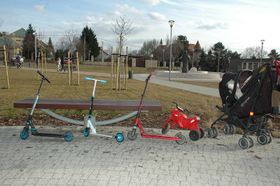 Az első kellemes tavaszi hétvége egyik napsütötte délutánjára beszéltünk meg találkozót az unokatesókkal. Ez egy igazi rolleres program, a nagyobbak már önállóan tudnak közlekedni a sétány egymásba nyíló útjain, de a kicsi motorost azért követni kellett – nem csak szemmel. Ugyanis a terep nem sík, és a kismotor a lejtőn nagyon neki tud ám indulni. (Egy ehhez kapcsolódó rossz tapasztalatomról írtam itt, a Normafánál található Anna-réti játszótér látogatásakor.)