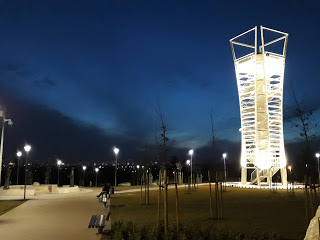 Ki gondolná, hogy Sashalmon, “a lapos Pest”, egyik szépséges részén van olyan pont, ahová érdemes kilátót emelni? Bevallom, bár tudtam, hogy Pest valójában nem lapos, hanem egy enyhén emelkedő medencére hasonlít, engem is meglepett, hogy a 16. kerület kilátót épített 2017 őszén ezen a különlegesnek első látásra nem mondható helyen, egy klasszikus kertváros közepén. Az új, gyönyörű igényességgel kialakított Reformátorok terén sétány, egy még ott jártunkkor nem üzemelő kávéház és egy szoborcsoport kapott helyet. A nézelődés után átrollereztünk a Havashalom téri játszótérre és parkba, sötétedés után értünk vissza az autóhoz, akkor lőttem ezt a képet a szépen kivilágított kilátóról.