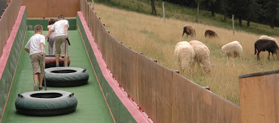 Vicces, ahogy a gyerekek a legelő birkák mellett húzták fel a fánkokat.