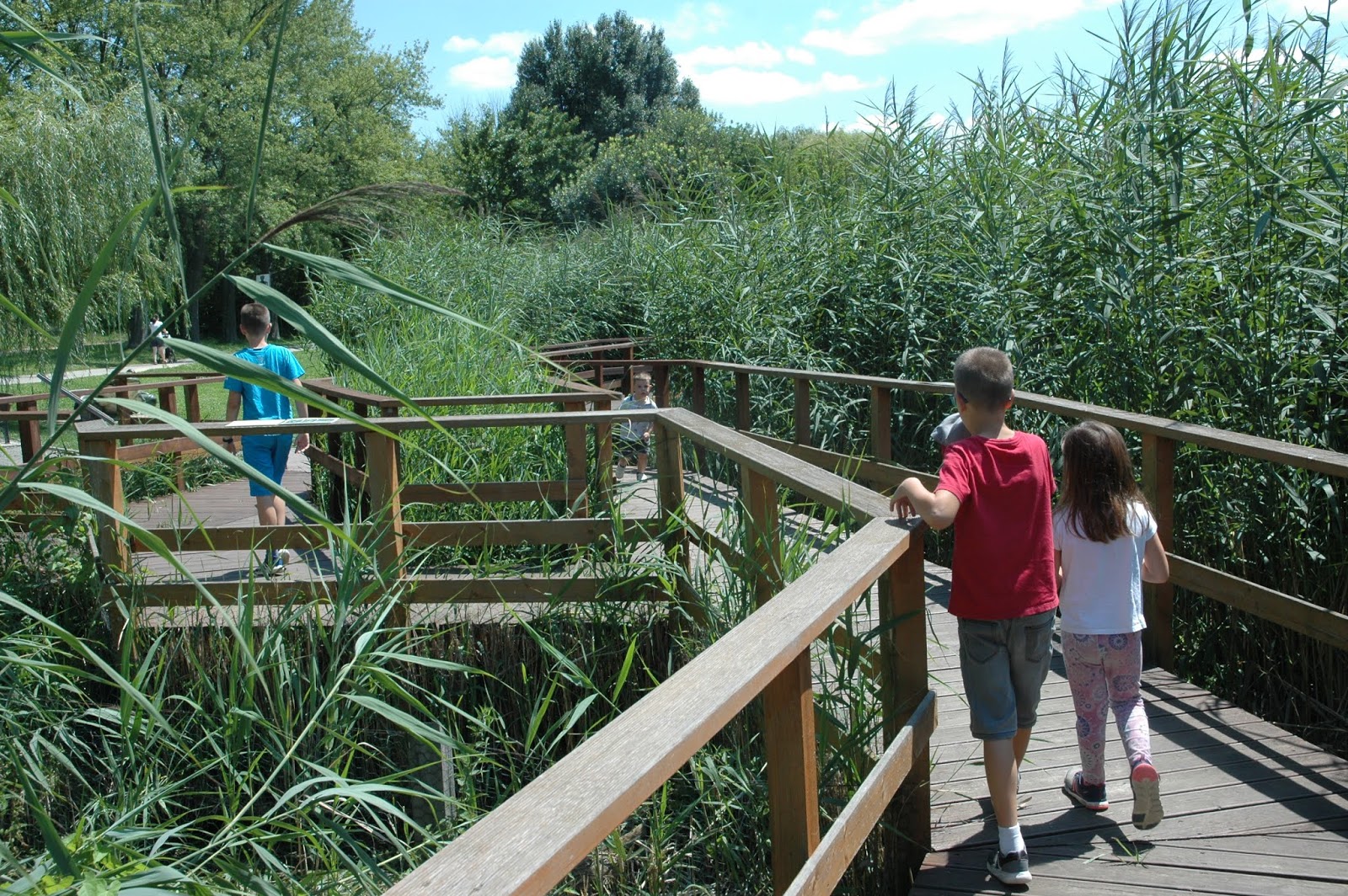A látogatóközpont felé haladva egy pallósor vezet a tó mentén, végén egy madárvárta és egy mini játszótér található.