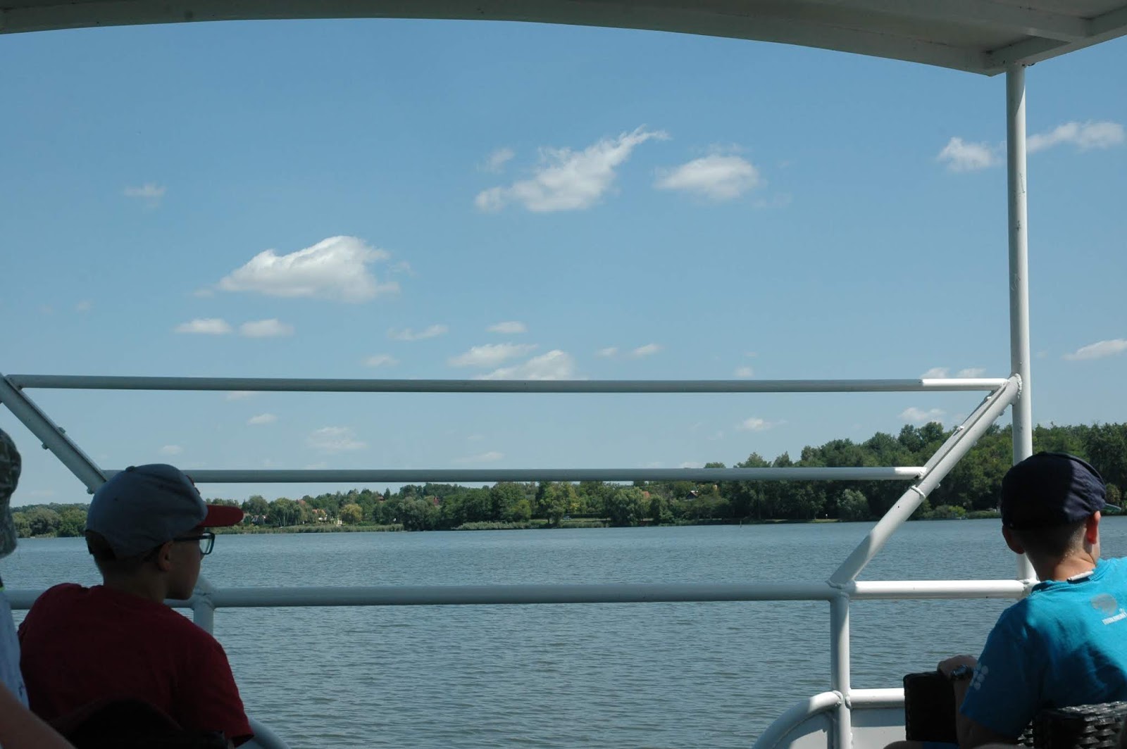 Egyszer csak szólt a recepciós, hogy összegyűltünk a hajóra, indulhatunk. Kicsi, elektromos hajón tettünk egy 30 perces kört a tavon, nem jutottunk messzire a látogatóközponttól ennyi idő alatt (a tó kb. 7 km hosszú!), de bőven elég volt a gyerekeknek ez a fél óra.