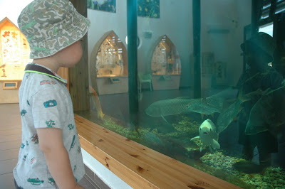 | Jó nagy ez az akvárium! Teli van olyan halakkal, melyek a Deseda-tóban élnek. |