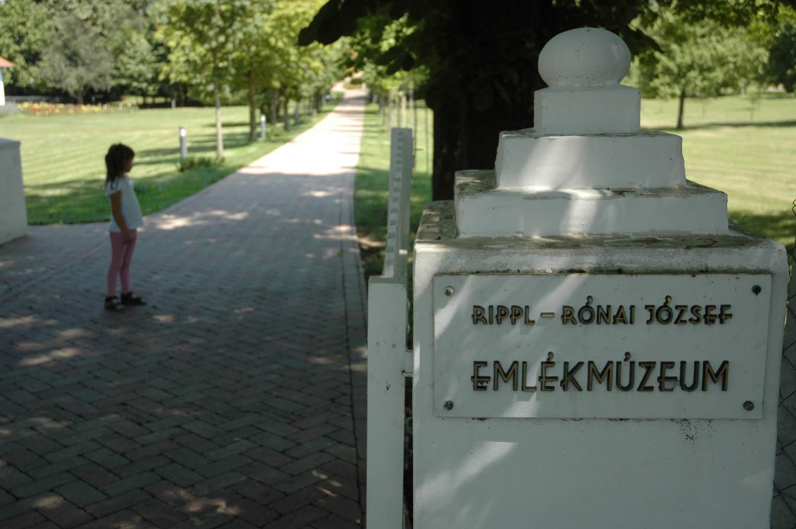 Nem erőltetek minden programot, és nem gondolom, hogy minden családtagomnak le kell nyomni a torkán azt, amit ő nem akar. Ezért ezen a meleg nyári napon, mikor a délutáni pihenő ideje alatt sétálni szerettünk volna a kellemes, árnyas Rippl-Rónai birtokon, és a nagyfiaink közölték, hogy ők márpedig NEM kíváncsiak egy számukra ismeretlen festő műveire ebben a hőségben… nos összenéztünk a férjemmel. És döntöttünk: kettéválunk. Ő (egyébként örömmel 🙂 ) ment egyet autókázni a kicsikkel, akik elaludtak és a két nagyfiúval, akik meg ugye nem akartak bejönni. Én pedig kézenfogva a lelkes hatéves kislányunkkal, beléptem a kaposvári Róma-hegy talán legszebb kertjébe.