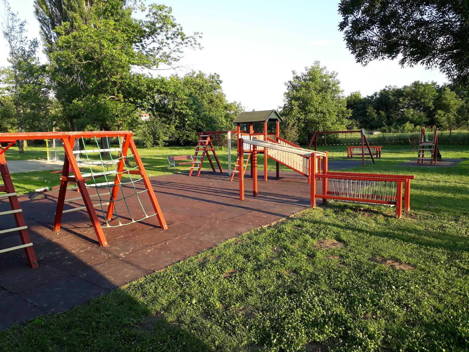| Irtó klassz és szépen karbantartott játszótér – sajnos teljesen árnyékmentesen. |