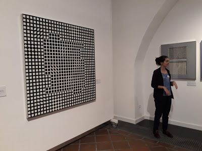 | Egy Vasarely alkotás előtt. |