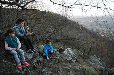 Aztán a széles, kényelmesen járható Guckler Károly tanösvényen – melynek neve a Google térképén Feketesalak út – jobbra indulva mentünk röviden, de a gyerekek kitalálták, hogy ők bizony még felfelé szeretnének menni, és találtak is egy ösvényt felfelé. A Természetjáró app – amit itt használtam életemben először – azt mutatta, hogy ha itt felmegyünk, szép kilátásban lesz részünk, így követtük a lelkes gyerekcsapatot.