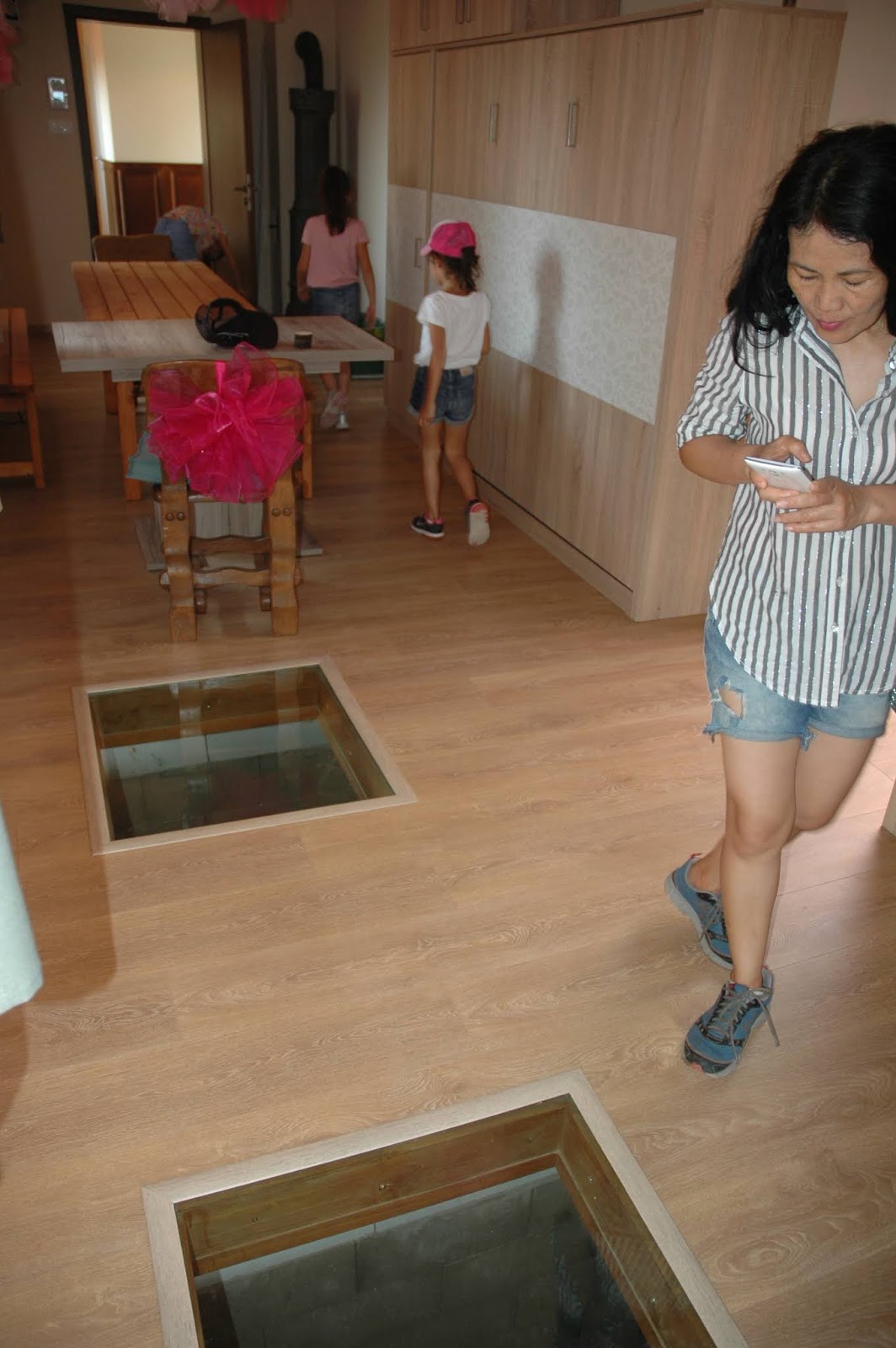 A vendégház padlószintjén kukucskáló ablakok vannak az állatokhoz! |