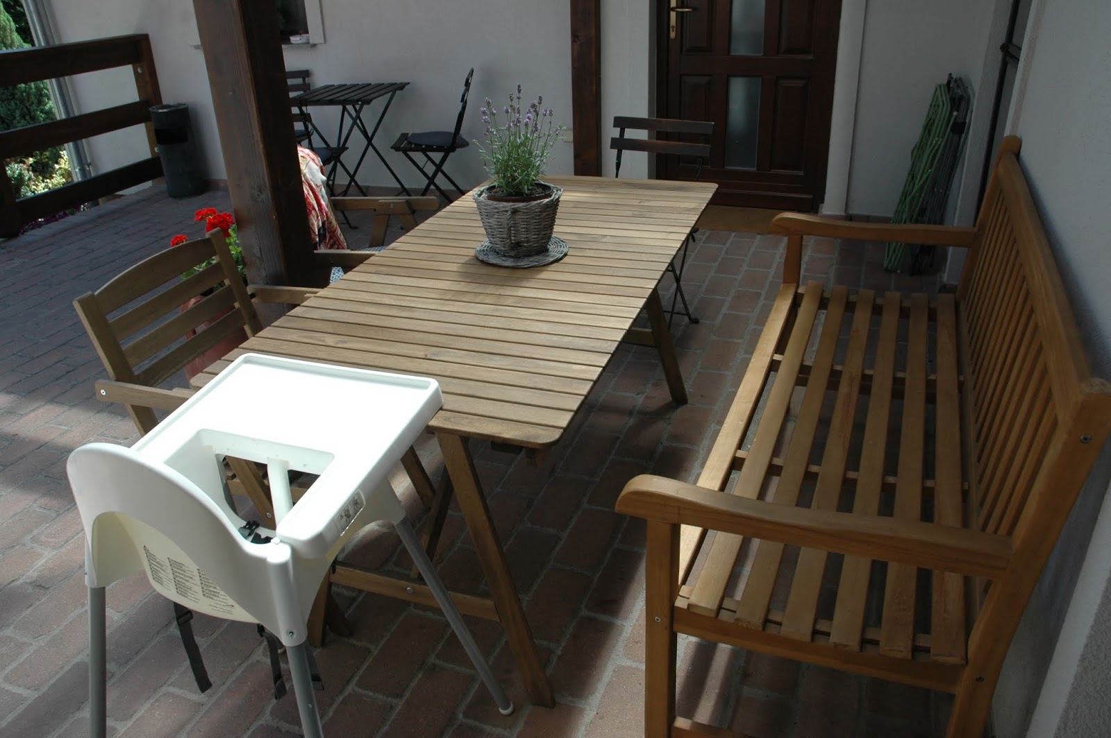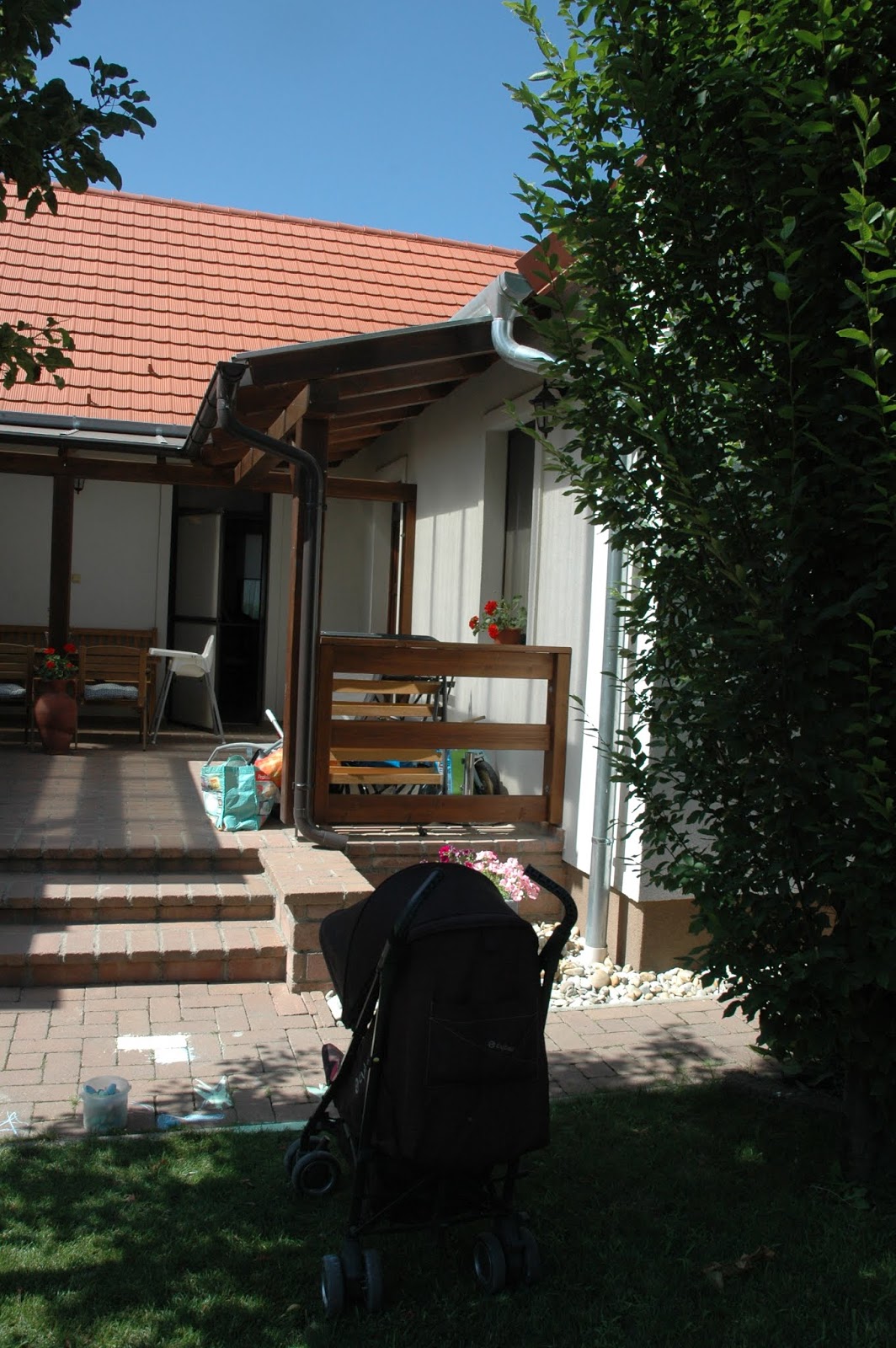 Itt ettünk, a terasz volt a közös családi ebédlőnk. Fedett! Esőben is kint vacsiztunk. |