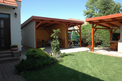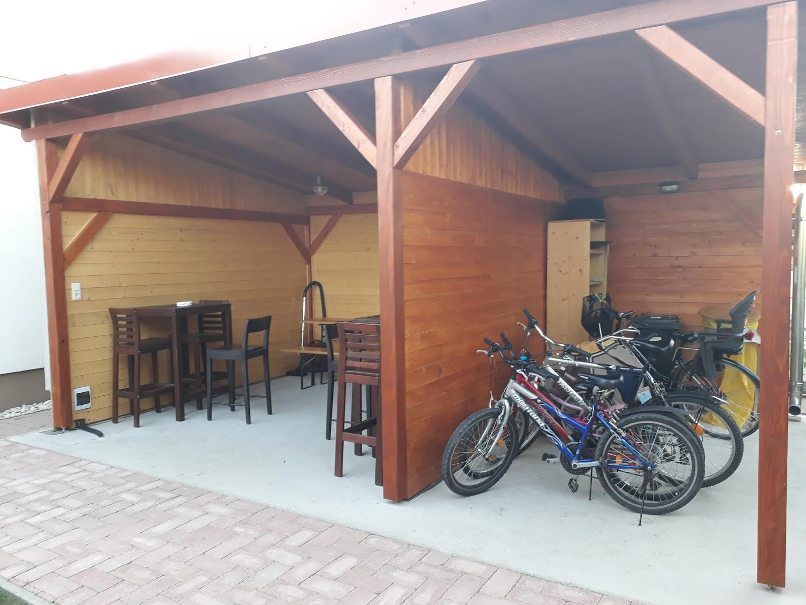 | Árnyékos, fedett kiülők és biciklitároló. |