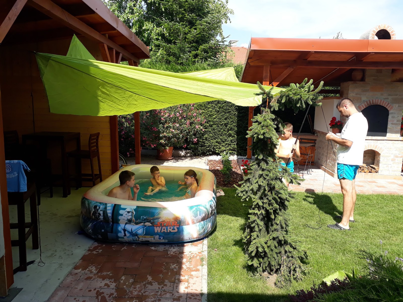 Egy meleg napon a szálláson maradtunk és saját medencénkben pancsoltunk. (Az árnyékoló is saját, a vizet a kútról kaptuk.) |