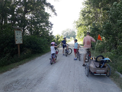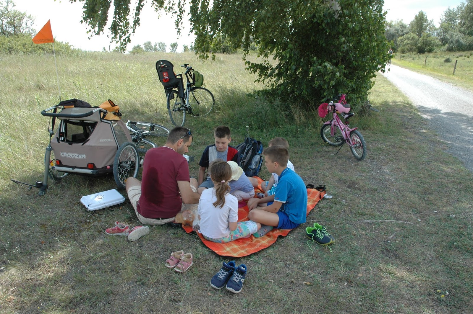 Jelenleg gyerekeink életkora 11.5, 10, 7, 3.5, 1.5. Ilyen korú gyerekekkel mi nem gondoltunk napi 10-15-20 kilométernél többet kerekezni, még akkor sem, ha sík a táj és legálisan lehetünk napon a gyógyszerszünet miatt. Nem teljesítménytúrázni indultunk, hanem nyaralni, barangolni. Ezért azt csináltuk, hogy előző este vagy aznap reggel átbeszélve a napi programot, mindig eldöntöttük, hogy biciklizős, utánfutós napunk lesz-e vagy sem. Voltak napok, amikor csak helyben bicikliztünk Hegykőn – ilyenkor a kicsi az ülésében ült és a 3.5 éves a futóbiciklijén jött mellettünk.