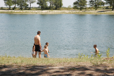 Első komoly tervezett pihenőnkről aztán alig tudtuk tovább csábítani a társaságot. Mi sem gondoltuk, hogy ez az Apetlon településhez tartozó Badesee nevű fürdőtó ennyire jó lesz. Egy rövid megmártózást terveztünk a melegben, de a gyerekek a hideg ebédünk után sem akartak sehová menni, s még kétszer bevetették magukat a vízbe.