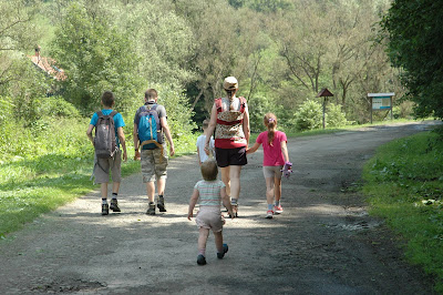 Caplatunk lefelé, a négyéves felkéredzkedik ölbe, a kétéves szintén férjemen, a hátán alszik… no, ez ám az edzés, elöl-hátul gyerek lóg Apun! De a gyerekek gyorsan regenáródnak, kicsi fiam is hamar újra szaladni kezd. Leérünk a szorosban vezető út szintjére, és tovább indulunk, hogy a Lázbérci-tó partját is meg tudjuk mutatni a gyerekeknek. Az 5 km-es tóparti útszakasz csodálatos része a magyar természeti útvonalaknak, egyetlen szomorúságom csupán, hogy a tiltás ellenére a helyiek jönnek-mennek autóval a tó partján. A fokozottan védett erdészeti útvonalon. Nagyon lelombozó, hogy még itt is autóktól kell félteni a túrázó gyerekeket!