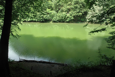 Észreveszünk egy tóparti kis horgászpihenőt. Fedett, padokkal felszerelt, és szabályos lépcsős lejáró vezet hozzá. Uccu neki, menjünk le! Itt esszük meg szerény kis uzsonnánkat, itt tartjuk az utolsó nagy pihenőt. Az ég ismét dörögni kezd, de már nem ülünk fel az ijesztegetésnek.