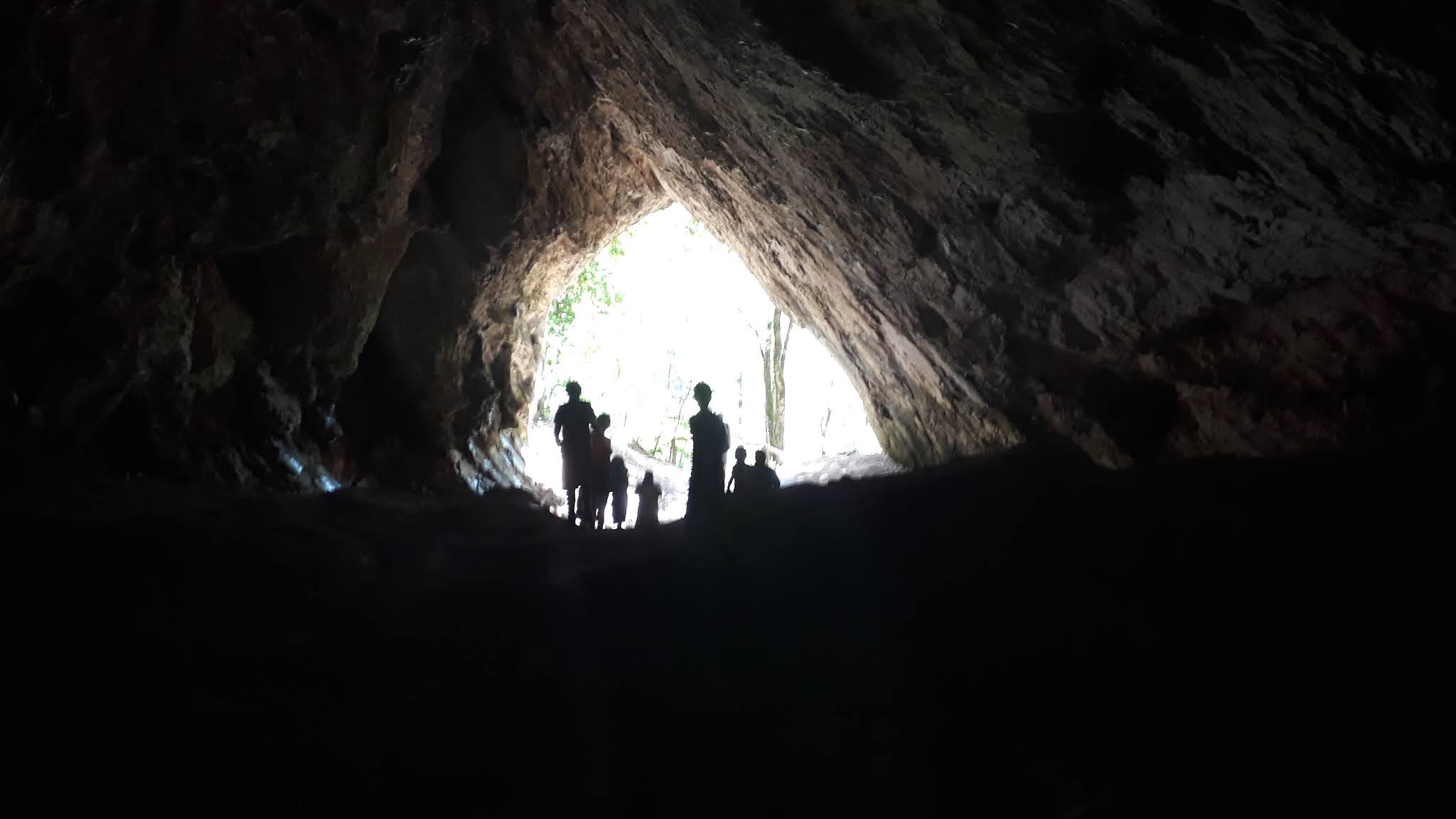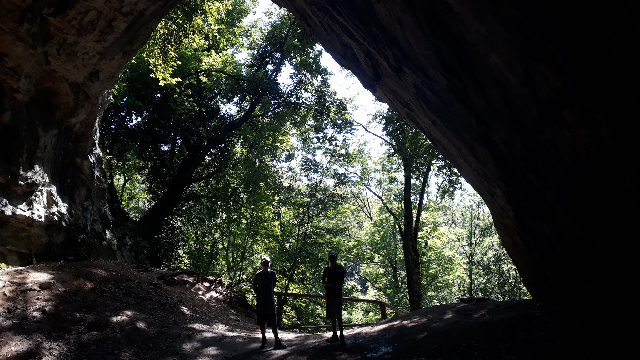 Tényleg meredek. Ne menjetek fel eső után, vagy csúszós, síkos időben. A szandált is jobb, ha elfelejtitek. Legyetek okosabbak, mint én. Mi épp nyári szárazság idején járunk erre, szóval nem veszélyes, inkább csak poros az út. Itt többen vannak, érdekes megfigyelés. A barlang tényleg monumentális, az ember szája tátva marad, ahogy belép… Vannak denevérek, és úgy sejlik a mélyben, talán van valahol folytatása is az ősember barlangnak, de oda nem merészkedünk be, csak egy szűk hasadékot látunk a homályban.