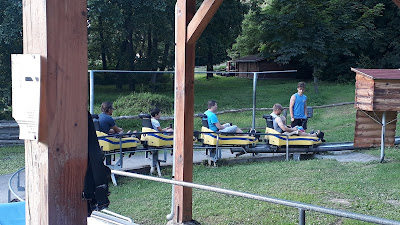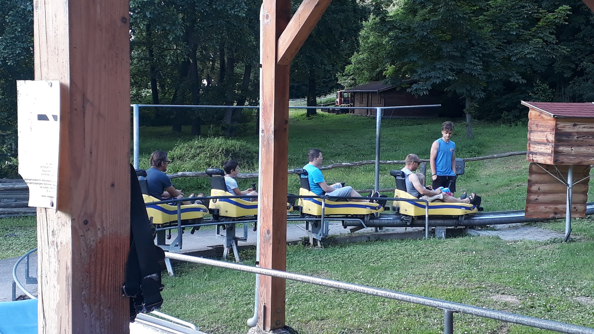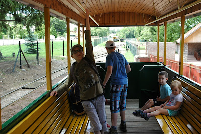 A réten még jut idő egy kis játékra, de aztán indul a kisvonatunk, amivel vissza szerettünk volna menni. Felvetem a visszagyaloglás gondolatát – hogy láthassuk a völgyben az útbaeső látnivalókat alaposabban – de ezt férjemen kívül minden jelenlévő leszavazza. OK, kisvonat. Jegyvásárlás, beülés, boldog utazás, integetés.