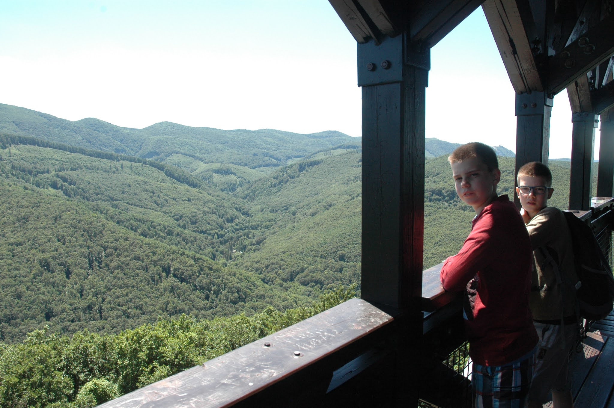 A tanösvénytáblák elég informatívak, nem tudunk mindent elolvasni, de jó a tudat, hogy az irány és a tempó nem rossz, már a 4., 6. stb. állomásnál tartunk… A kilátó előtt látjuk, hogy egyesek segway-jel jöttek fel és gurulnak le, jó móka lehet, de én mégsem irigylem, ugyanis a segway-esek nem látják ezt, apránként, lépésenként: