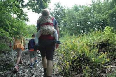 A gyerekek egészen jól bírták az út feléig (ami ugye a teljes táv negyede), onnan gyakrabban kellett megállnunk, pihenőt tartanunk. Férjem itt kezdte el mondani, hogy vissza kellene fordulnunk, nem fogják bírni a kicsik. Ezen a napon én voltam az elszántabb, és ragaszkodtam hozzá, hogy menjünk tovább, ha már itt vagyunk, csináljuk végig. Hozzáteszem, nem az én hátamon pihent a 2,5 éves, közel sem pehelysúlyú lányunk, hanem a Férjemén. Nem csodálom, hogy ő jobban tartott a kudarctól! Győzött az akarat és haladtunk tovább.