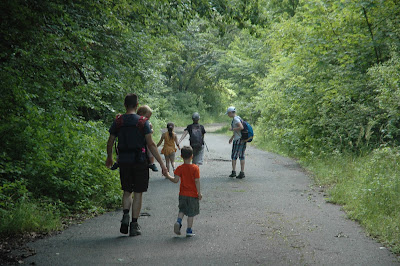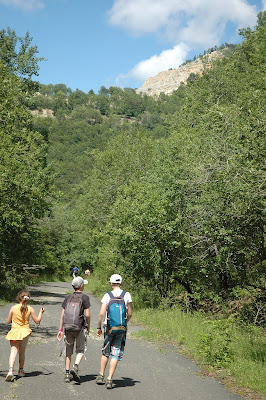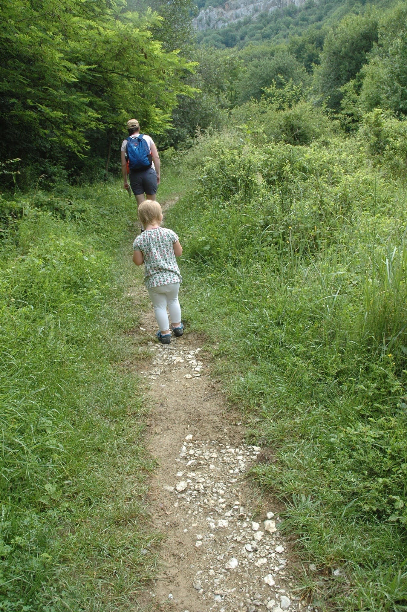 Lefelé, hiába haladtunk már visszafelé és LE, sokkal többször kellett megállnunk erőt gyűjteni, mint felfelé. A négyéves óvodásunknak kellett meg-megújulnia ilyenkor. Az út utolsó negyedében semmi, de semmi mással nem tudtuk őt motiválni, mint hogy hamarosan jégkrém következik! Erre a szóra nagyon édesen, mindig jobb kedve lett, és képes volt még egy kicsit gyalogolni. A legutolsó hosszú szakaszon, az aszfaltúton kitaláltak egy játékot, amivel előrerohantak, és teljesen elfelejtették, hogy mennyire elfáradtak. Jó volt őket nézni lemaradva, mögöttük ballagva. Hangosan kacagtak minden fordulónál és fütyültek a feltört lábakra, fájó izmokra, a megtett kilométerekre.